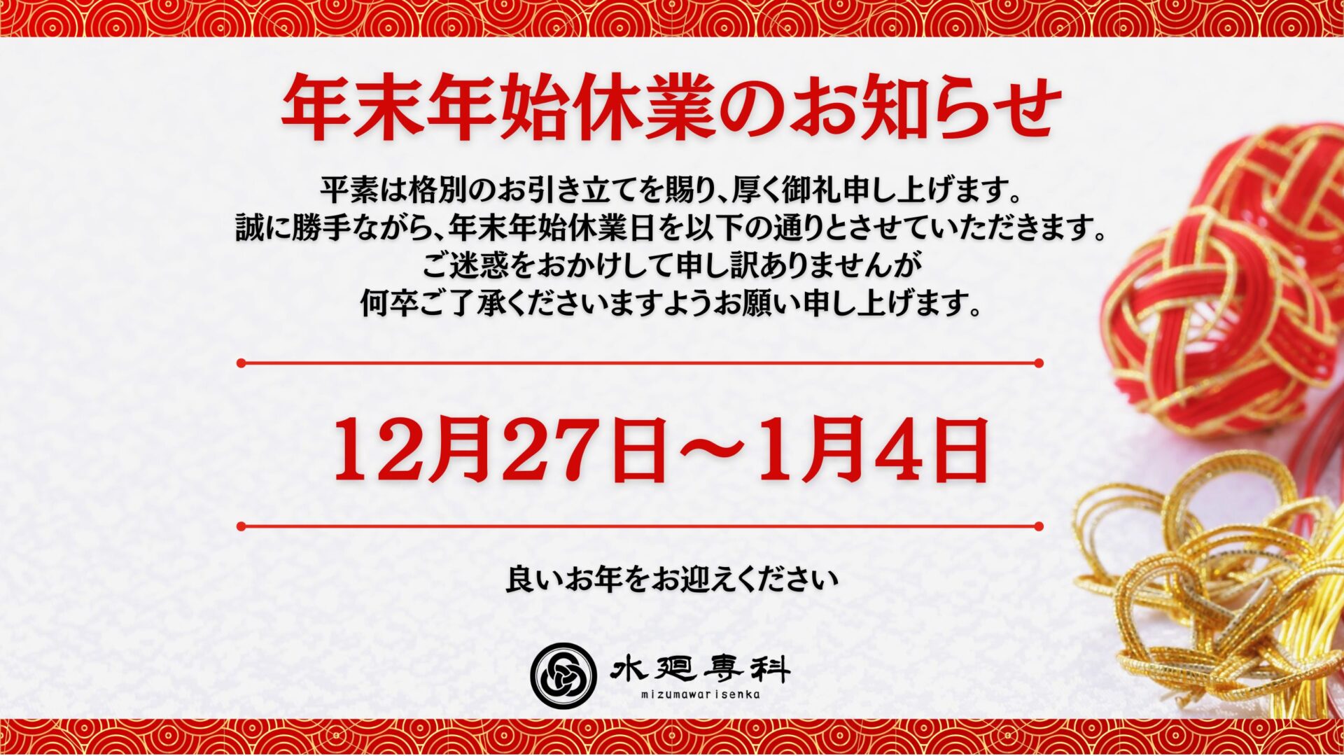 誠に勝手ながら、当社では下記の期間を年末年始休業とさせて頂きます。